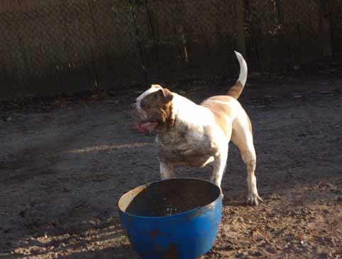 Het grootste plezier dat je Spike kan doen is hem een tonnetje water in de ren zetten, niet om uit te drinken, nee daar heeft hij geen tijd voor, hij gooit en smijt ermee! Na al dat plezier een beetje viezer maar wel heel gelukkig, gaat hij dan weer in zijn kennel, en wordt hij vanzelf weer schoon, klaar voor de volgende keer!